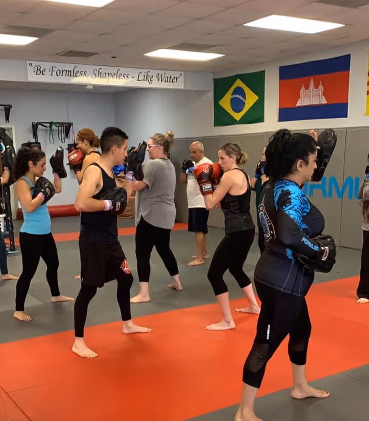 - Learn punches, kicks, footwork, and defensive movement